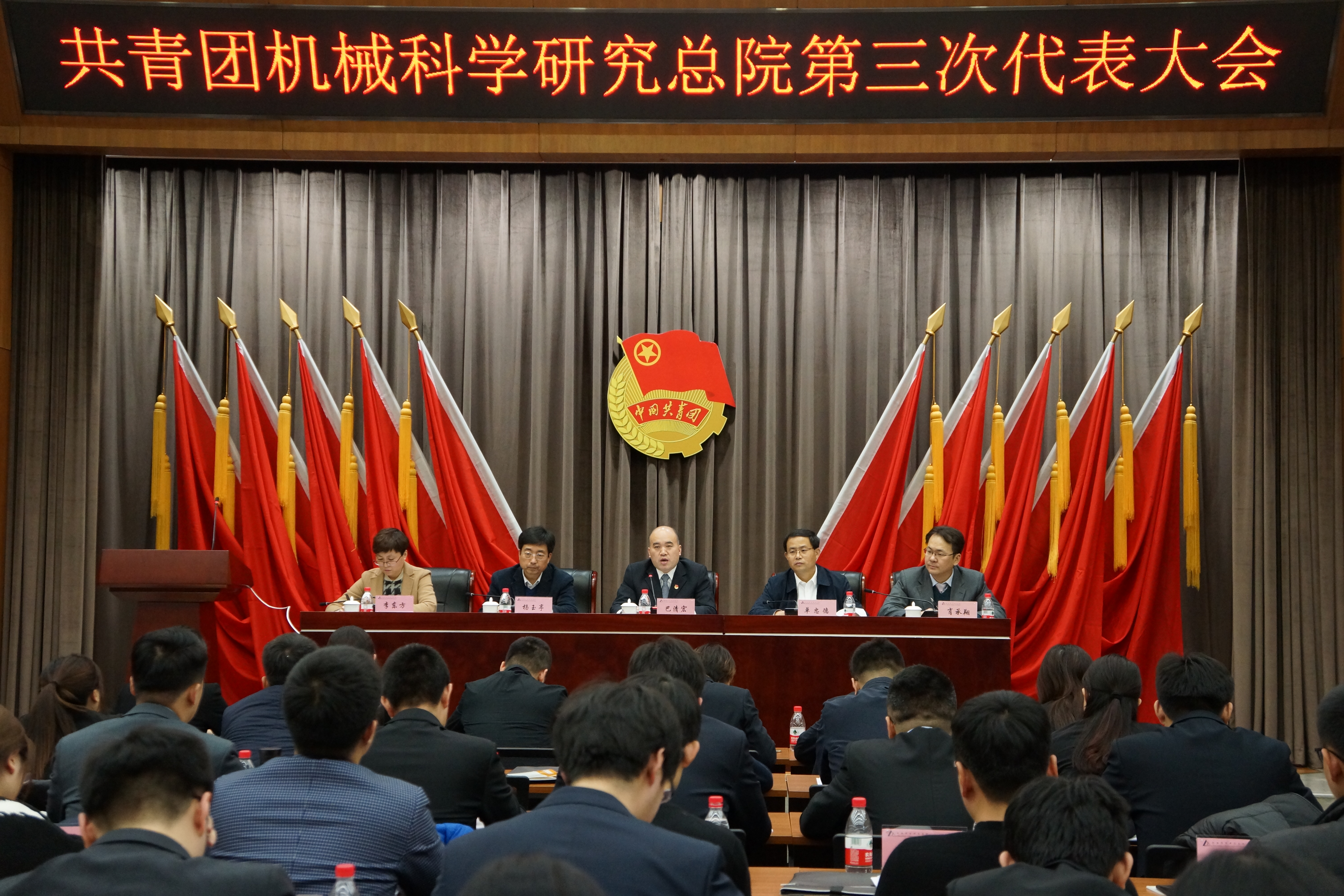 20171218日,共青團機械科學研究總院第三次代表大會隆重舉行。本次大會是黨的十九大勝利召開后機械總院全體團員和青年職工政治生活的一件大事。中央企業團工委副書記巴清宏,機械科學研究總院副院長單忠德,機械科學研究總院工會主席、黨群工作部部長楊玉亭出席會議。機械總院99名團員代表參加了會議。